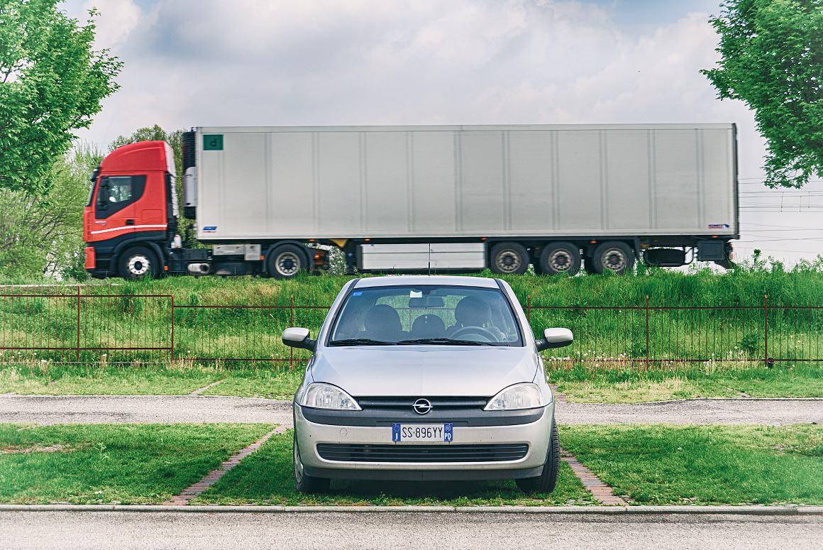 I colori sono bruttini, ma la foto è una buona intuizione. C' è anche una lieve pendenza a sinistra con ruote sterzate a destra che insieme sostengono l' impressione dello "sforzo". C' è poi la fortuita coincidenza dei colori grigi della cassetta porta attrezzature del camion e dell 'auto che fa apparire il tutto più coeso. _________________ Belle foto. O perlomeno belle idee -> |
