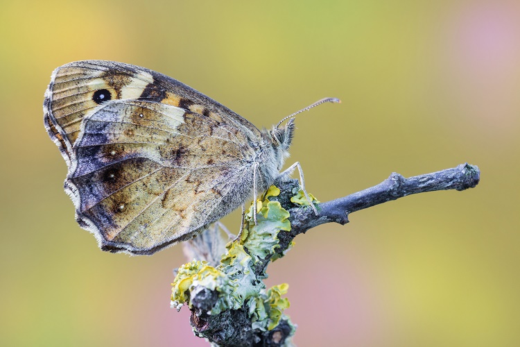 La Pararge aegeria è una farfalla dai colori autunnali, sebbene, svernando anche come pupa, sia già possibile trovarne esemplari adulti a fine marzo (questa mia è del primo maggio).