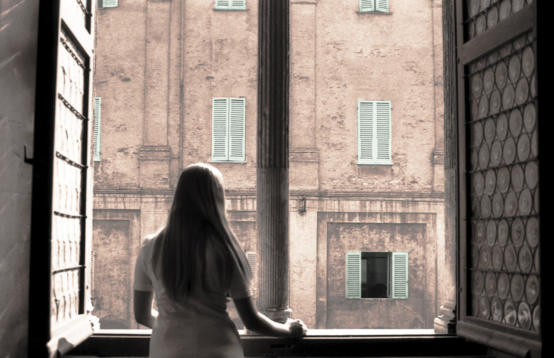 la distorsione della lente è molto evidente nella finestra di sn, i cui bordi sono curvilinei......invece che rettilinei