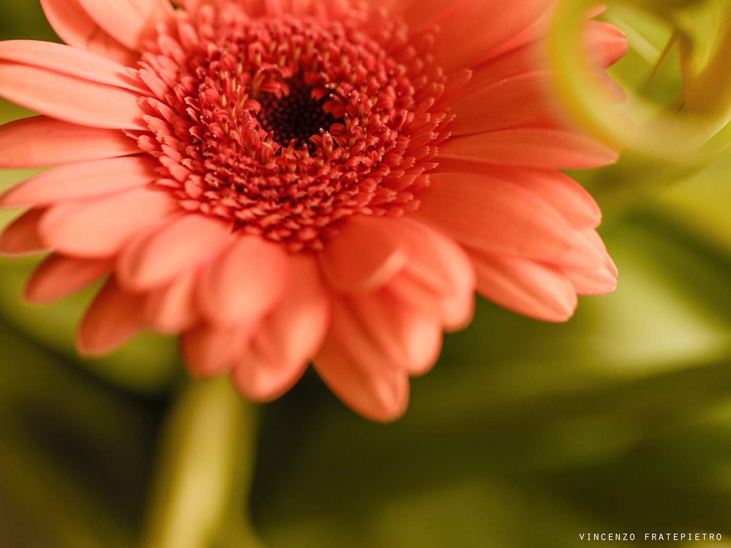 Ciao Vincenzo, se posso permettermi... la composizione sembra casuale, il fiore resta impallato dietro ad una porzione di vegetazione verde sull'angolo dx alto, inoltre la posizione del fiore, tagliato sopra e a sx, con tutto quello spazio sotto..., personalmente la vedo un poco confusionale...