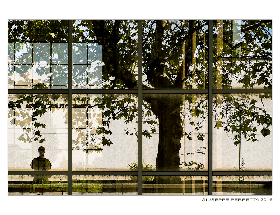 Un'immagine che si forma nel riflesso come su una pellicola da sviluppare. Certe cose non nascono per caso: una compo che decentra i vetri del finestrone per non intrappolare lo sguardo nella rigidità delle geometrie e invita a spaziare nella scena. Una figura umana che si disegna in basso e che fa capolino nella magica atmosfera di questa caleidoscopica rappresentazione. Intrecci di riflessi, di fuori e dentro, di freddo vetro e calda natura. Preferita senza indugi Ciao