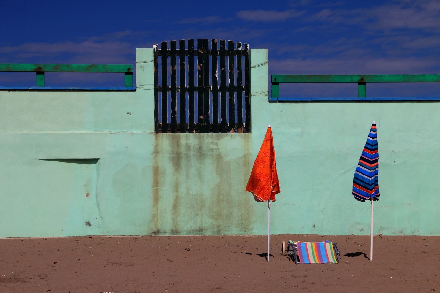 nella mia suggestione ho identificato il cancello e la struttura sulla spiaggia come il confine fra il mito di staccare e non pensare più a niente, solo al presente, in questo caso il mare e il sole, la sabbia.