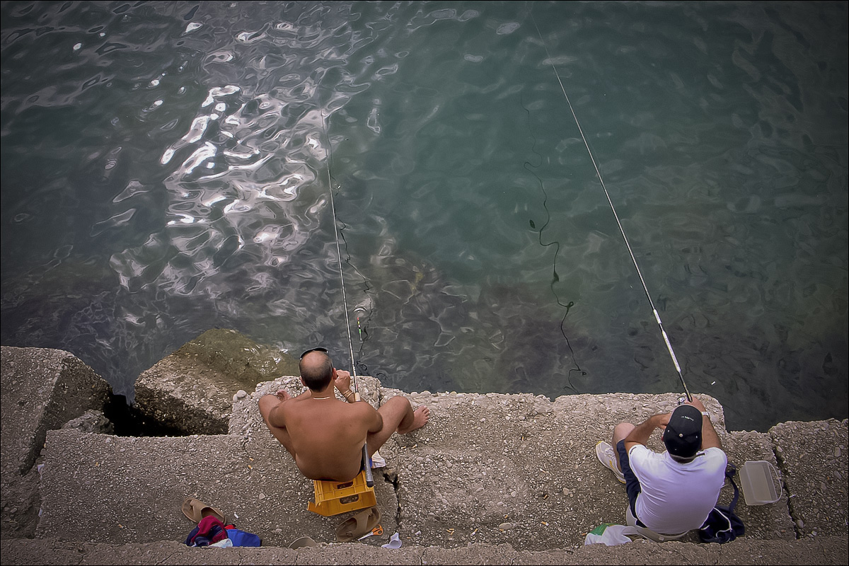 Una simpatica scena dai colori veramente naturali che rendono perfettamente il momento colto. Questa la cosa che piu mi ha colpito, con queste rocce in basso e il mare davanti verdastro ci si potrebbe davvero far prendere dalla post e tu sei stato bravo a mio avviso a restituire una fedeltà quasi del tutto originale. C'è solo una leggera saturazione e un po di contrasto . Apprezzo ciò di questa foto "semplice" e genuina  |