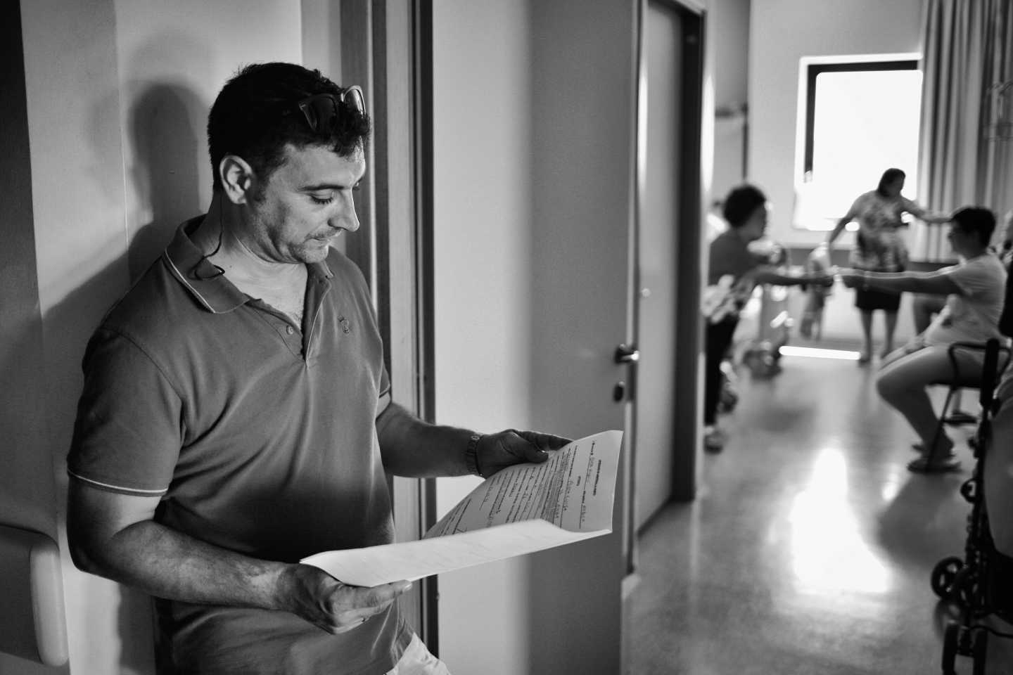 Ok ho capito , un reparto maternità , e l'uomo legge l'atto di nascita, ho impiegato un pò , ti chiedo scusa. Ho avuto difficoltà a capire che si trattasse di un reparto, è cosi? Effettivamente me lo chiedo ancora ... il passeggino tagliato a tre quarti... insomma , si poteva forse fare meglio , un diaframma piu chiuso avrebbe reso leggibile di piu il contesto e un pdr diverso avrebbe aiutato...però ho capito , è qualcosa Smile