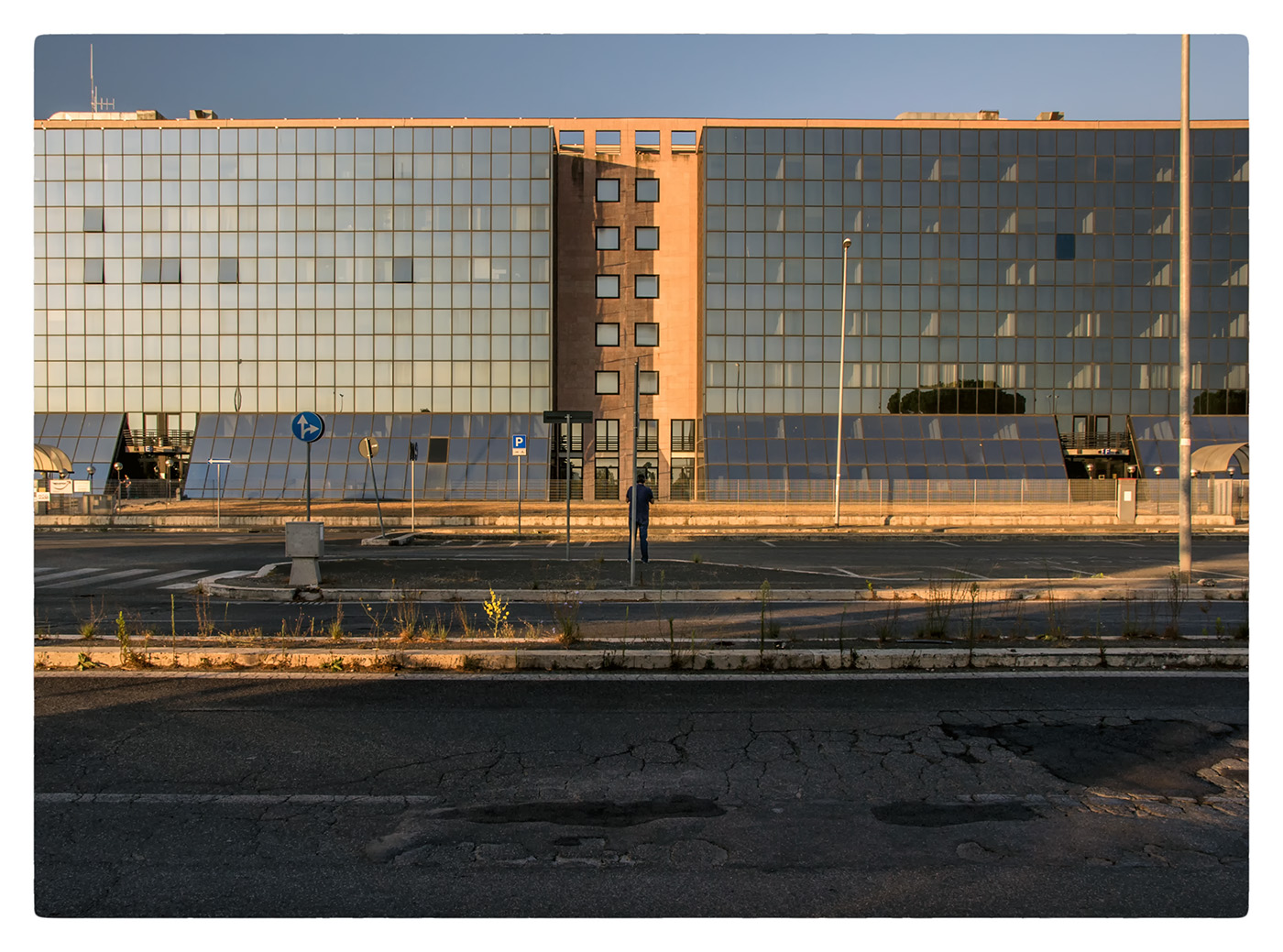 Mi e' capitato di recente di seguire un noto personaggio di photo4u, nelle sue scorribande fotografiche, ho voluto nel mio piccolo omaggiarlo con una foto che lo ritrae al centro dei suoi pensieri mentre inquadra e compone quello che ha immaginato e poi creato attraverso la fotografia, di recente abbiamo visto questo scatto proprio in questa sezione, un ringraziamento per una bella (mezza) giornata, passata in mezzo ad elementi architettonici della Roma anni 50/70, periferie deserte e degradate, ampi spazi, Auditorium e Foro Italico.