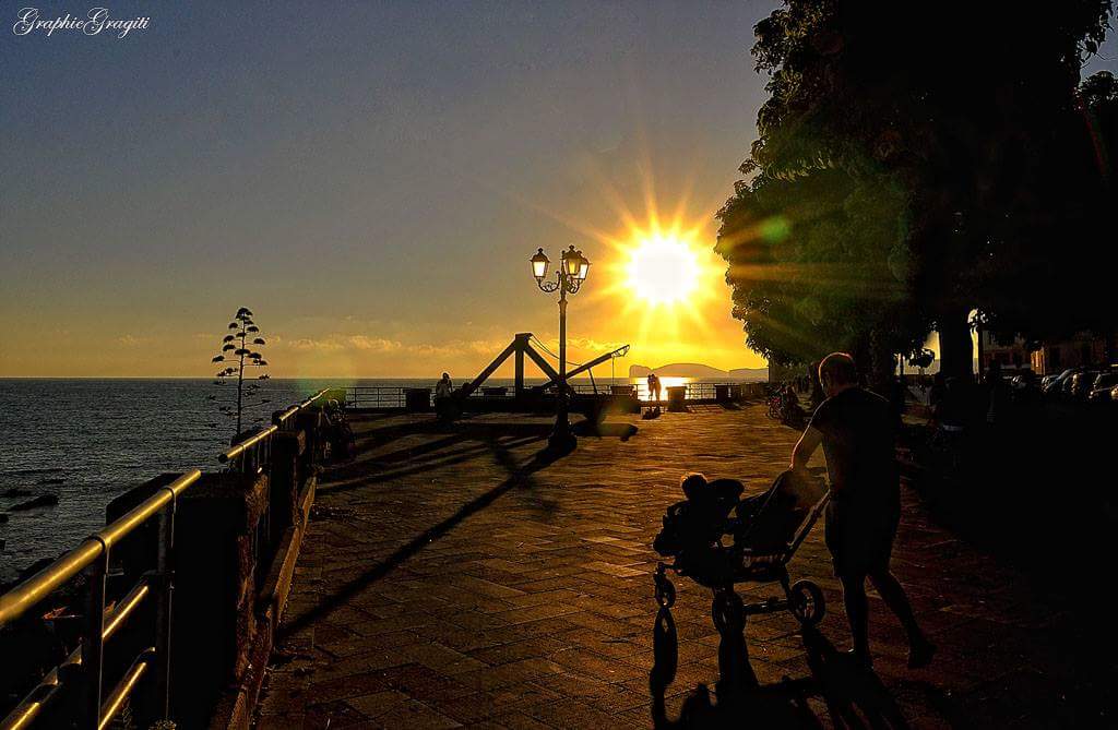 Le tonalità non mi dispiacciono, come anche il papà con il passeggino....i 2 che si abbracciano all'orizzonte... Il tutto su uno sfondo caldo.