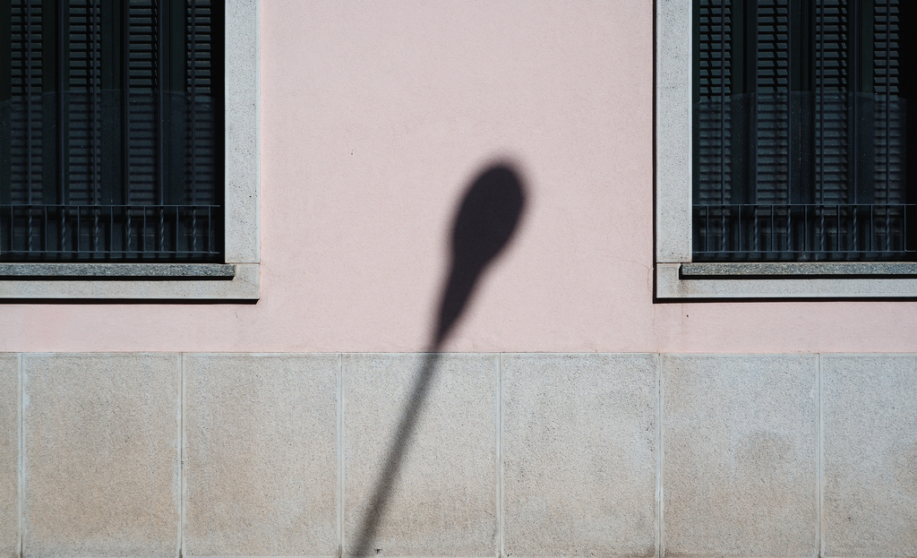 Delicati toni, luce naturale e carezzevole e l'ombra che anima il muro.