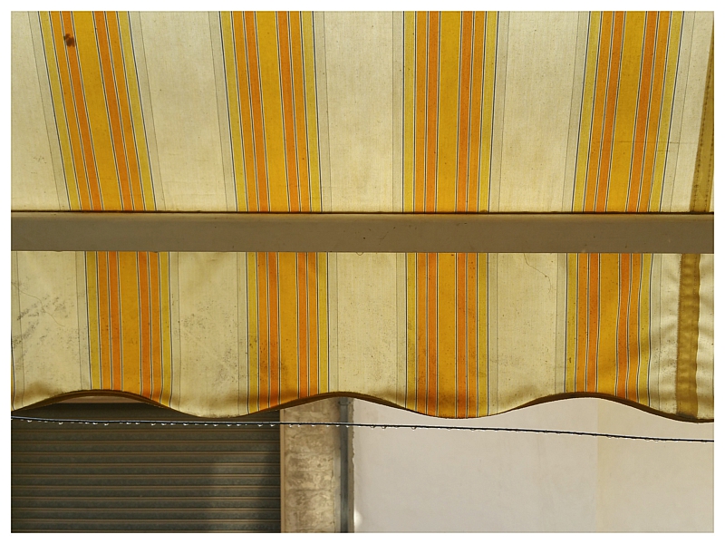 Le goccioline di acqua in sospensione all'orlo della tenda sono deliziose. Qui si poteva puntare sul rigore assoluto delle line geometriche in gioco e dei colori presenti, oppure rendere una versione che si concentrasse sulla aulla rilassata e un filo scomposta naturalezza di un particolare del quotidiano, davvero nature . Hai giocato sulla seconda possibilità e per me hai ben scelto: sarebbe stata una battaglia ardue da vincere quella di far bella la cruda matericità della serranda in sfondo...
