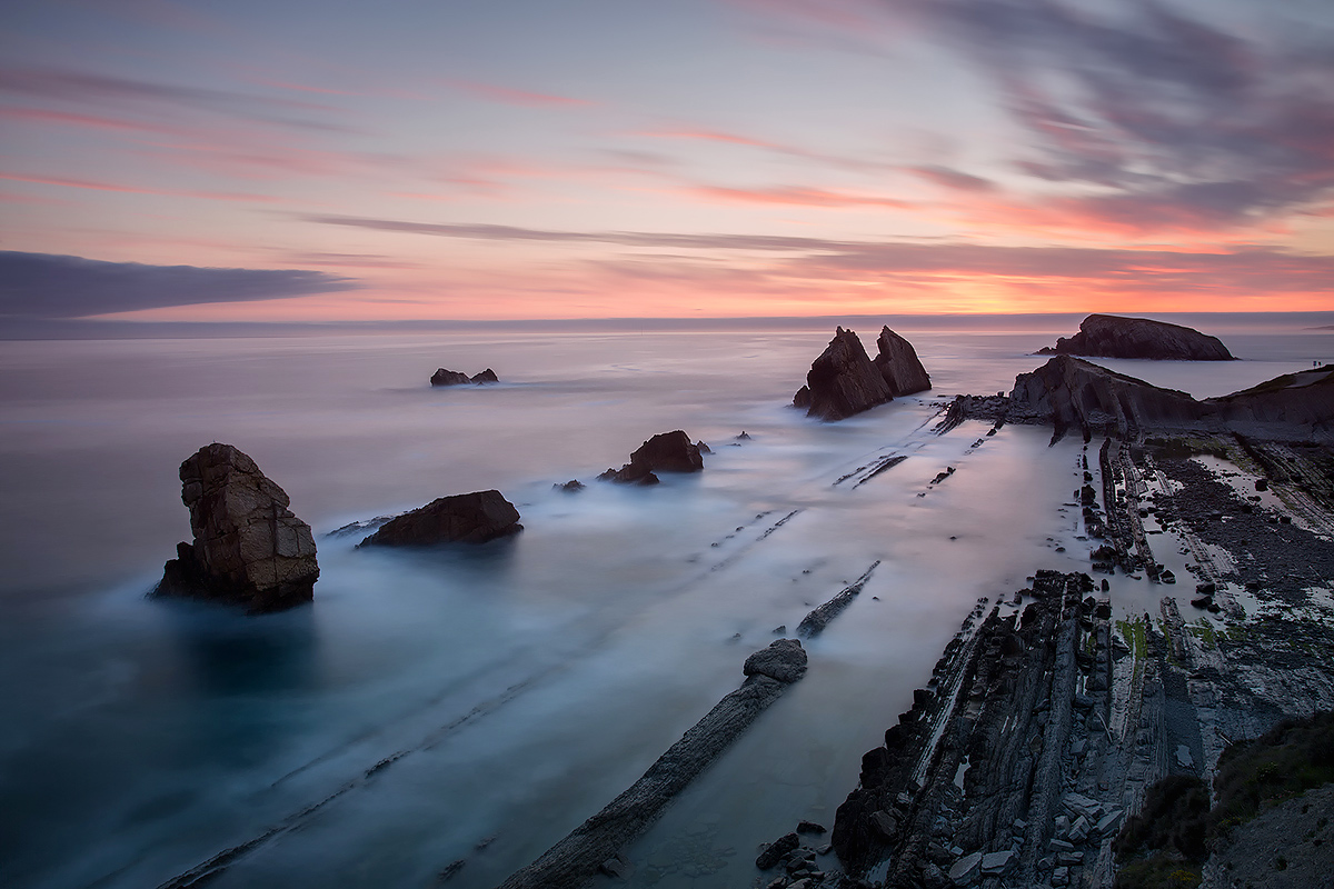 [quote="Angepa"non i convince lo stacco brusco di colore dell'acqua in prossimità delle tre rocce sulla sx:ciao:[/quote]. Concordo con Angelo. Mi piace molto la composizione. Le roccette che attraverso una linea in diagonale sembrano essere diventate una stradina che guida l'occhio in fondo dove il sole sta nascendo.  _________________ Emanuela