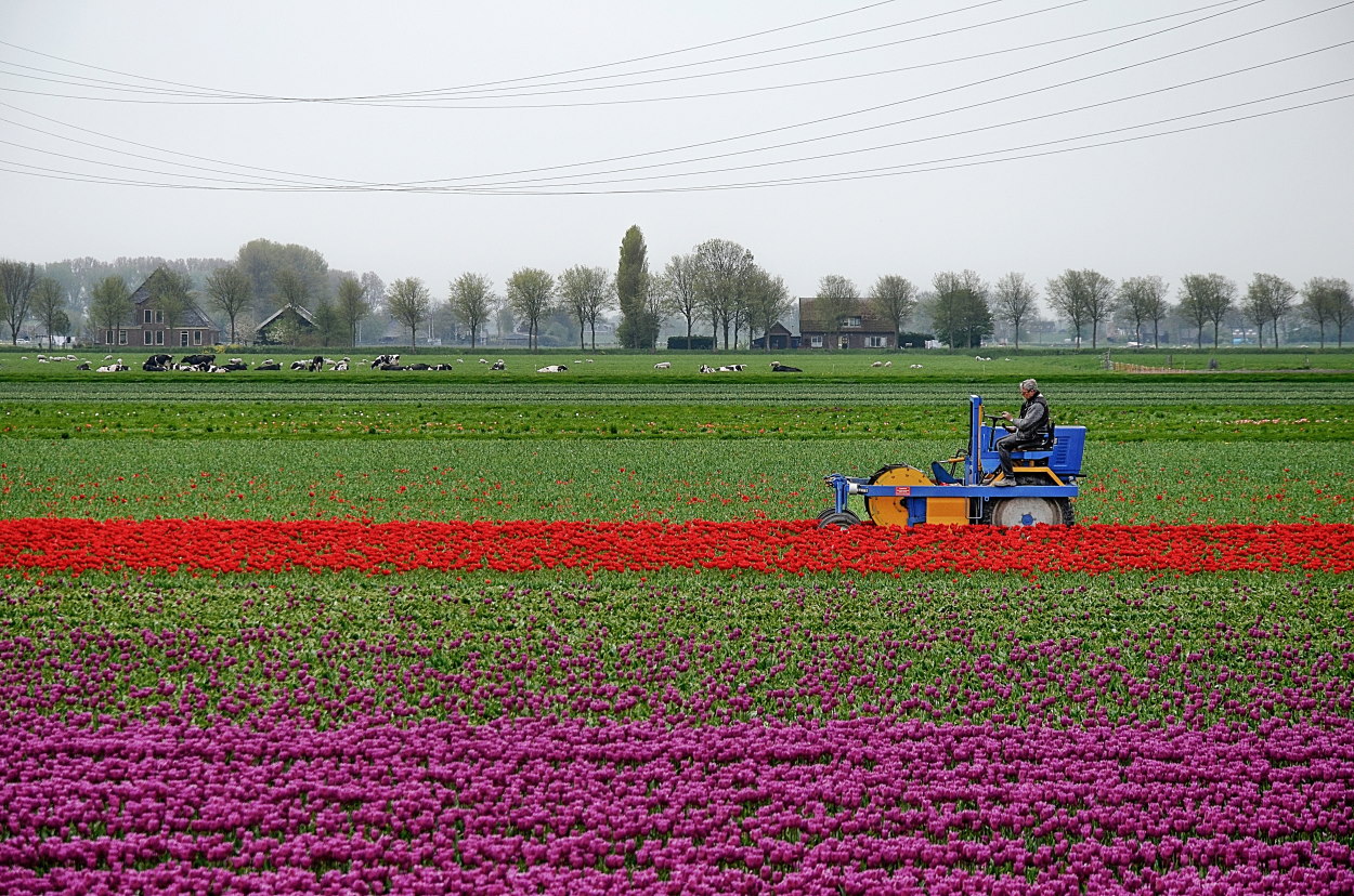 Una foto che non alza la voce; eppure, fra colori e geometrie, ci si poteva lasciar tentare assai. Certo la specificità e la particolarità di un luogo e delle sue ricchezze aiutano non poco il lavoro del fotografo. Ma bisogna saper sfruttare questi piccoli tesori e porli al loro giusto posto nel contesto. E anche un pizzico di fortuna, se ogni cosa è ben curata, deve fare la sua parte, e qui accade questo. Contro di te remavano la giornata un po' grigia e anche la conseguente luce non certo spettacolare. Ma nello specifico, è stato un colpo di fortuna: le tinte vivide dei papaveri e le loro lunghe linee nel campo hanno la possibilità di spiccare al meglio, come su di uno sfondo elegantemente neutro. Hai composto intelligentemente con l'uomo e il suo veicolo blu al lato fotogramma, e lo sguardo può raccogliere ogni petalo colorato in libertà . Se alziamo lo sguardo troviamo una quinta teatrale immaginaria :il molle gioco, sottile e fluido, dei cavi sospesi sulla quiete del riposo della mandria prima dell'abitato. Insomma: ogni cosa nella apparente semplicità è al suo posto, in armonia e verità. Una delle foto più belle della tua galleria. Stellina