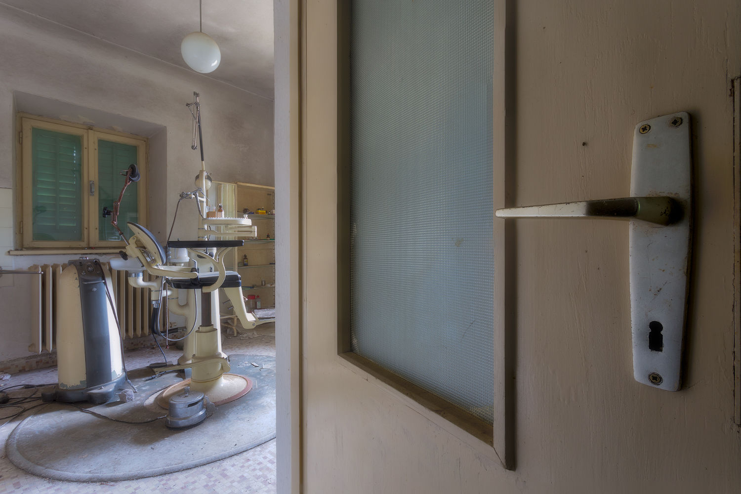 Quello che rimane di un vecchio studio dentistico abbandonato.