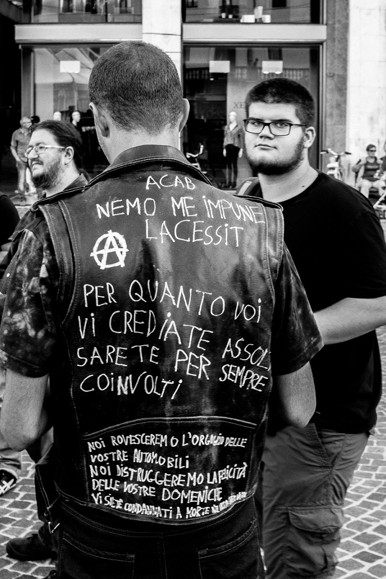 Si perde del tempo a leggere tutte le scritte prima di arrivare allo sguardo che tutto e' meno che rabbioso del ragazzo, a me fa tenerezza, altro che rabbia.