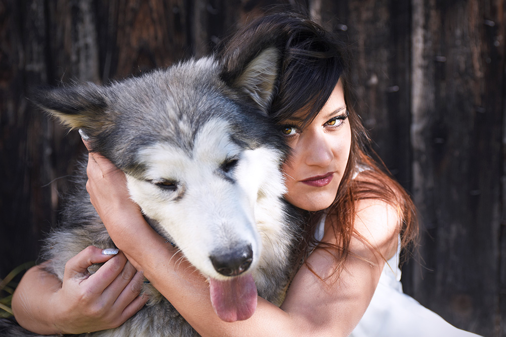 L'abbraccio è troppo tenero e disarmante, e spicca la dolcezza delle palpebre chiuse del cane, mentre lei ha uno sguardo caldo e quasi felino...eheh.