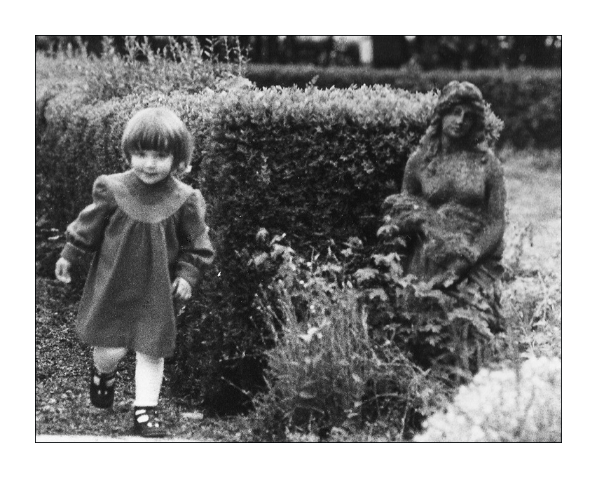 Che bello questo vecchio scatto analogico!La statua,nel suo aspetto materno,sembra sorvegliare la bimba.Mi piace molto anche il bn con la sua granulosità. Ok! Ciao