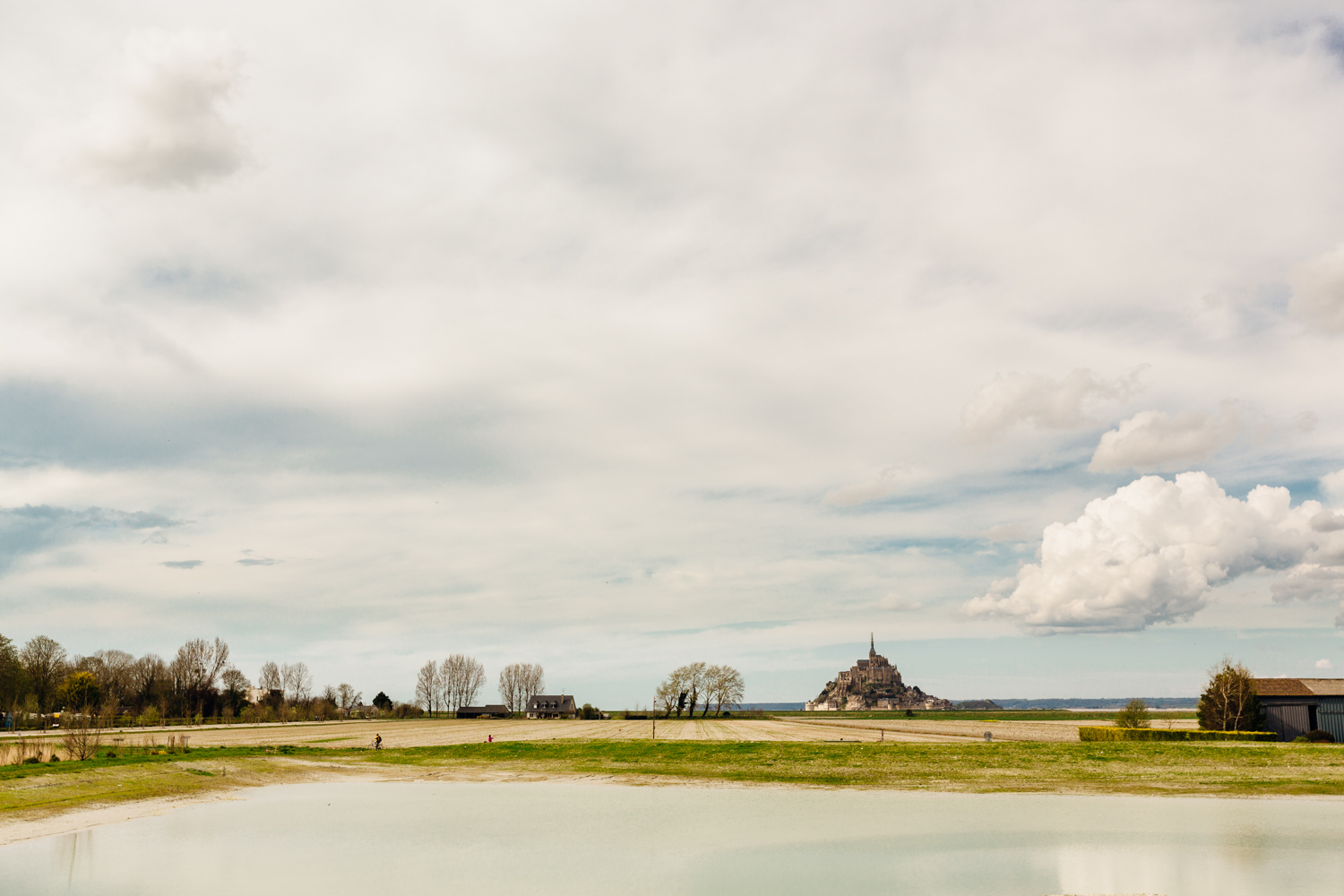 Un'immagine piena di luce dove i pochi elementi ( Mont St Michel se non sbaglio)hanno un ruolo di contorno. Lo spazio e la luce sono i veri protagonisti di questa ottima prova.