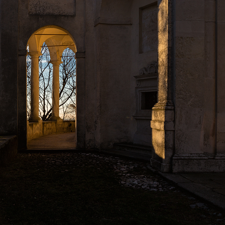 Io di questa location sinceramente preferisco decisamente questa versione. La successiva ha certamente con questa molte cose in comune, ma la maggior percentuale di luce, la apertura più ampia all'esterno, a lato dell'arcata, toglie alla scena quell'aura di mistero, quella magia di confronto fra luce dorata dallo sfondo, che si alterna come sola alternativa di luce, alla oscurità densa del sottoportico, che me la fa piacere. In questa c'è un'aura di mistero, come una nota di strana sacralità. La 3 poi è piacevole e brillante, ma è tutt'altra foto.