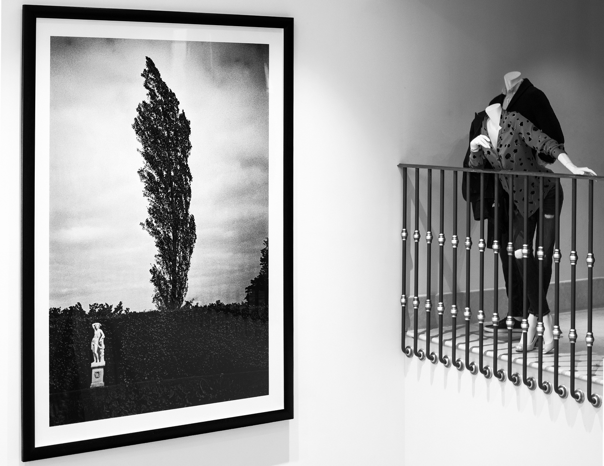 Ho faticato notevolmente per tagliare via dall'inquadratura tutto ciò che a mio avviso non c'entrava nulla, da cui il formato anomalo della foto. Nell'ambiente c'erano un'enorme scalinata e immagini/quadri di ogni tipo, e il fotogramma è stato composto per dare l'idea che i manichini (che affacciano sulla scalinata e che per mia fortuna non hanno una testa) osservassero solo quel quadro.