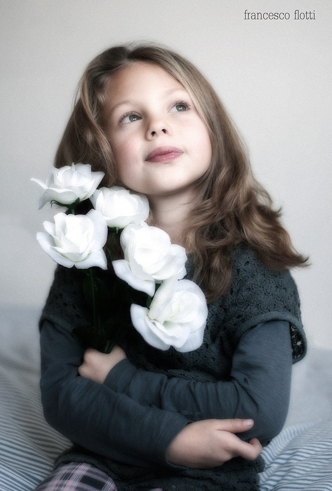 A me piace molto questo ritratto. Devi solo rivedere un po' l'effetto flou che soprattuto sui fiori è quasi fastidioso  |