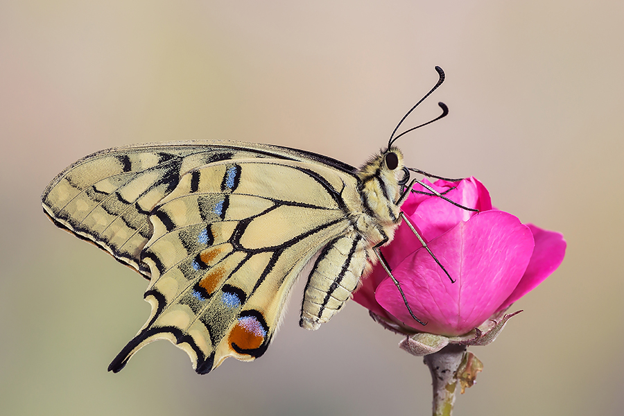 Lo sfondo, bello in sé, in questo caso si confonde un po' troppo con i colori del macaone.