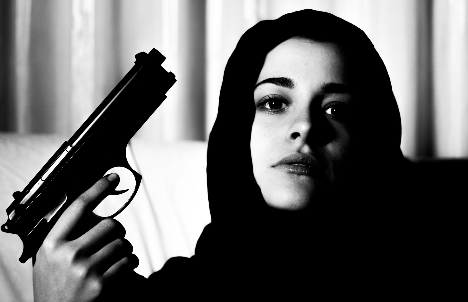 Scusa Marco, ma se l'autore dice che l'oggetto impugnato non e' significante, allora non caratterizza la personalità della ragazza, di fatto, senza quell'incipit dell'autore ci saremmo sbizzarriti sul perché una ragazza con il velo nero, di questi tempi, abbia uno sguardo distaccato, quasi assente, impugnando un'arma. Sarebbe stato quello si un ritratto, ma con quella frase....tutto cambia.
