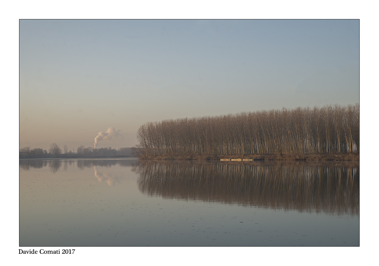 La luce ed il pioppeto e la concretezza dell'acqua e dei riflessi... bellissimi, ma quel pennacchio di bianco ed industriale vapore... spettacolo nello spettacolo.