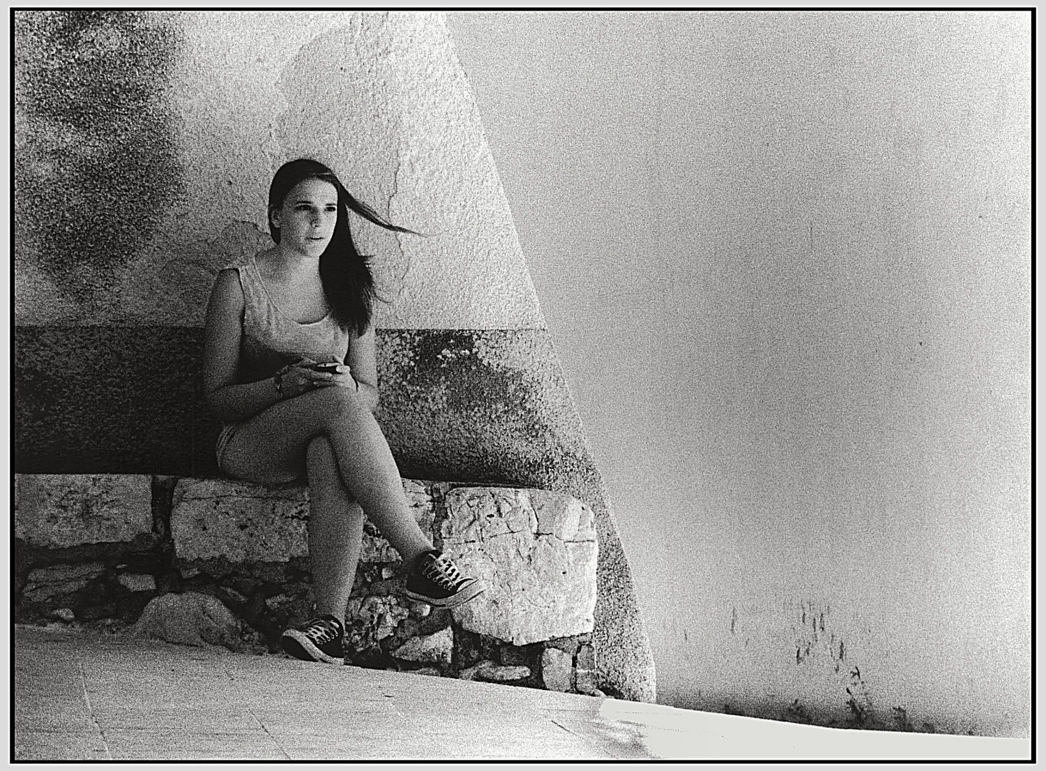 Bellissimo mix tra la grana del muro e quella dell'immagine.