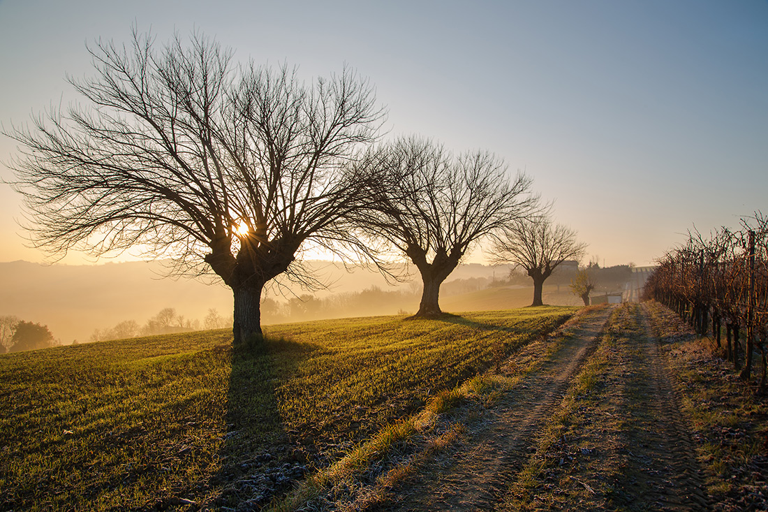 Un bel controluce agreste, efficace la linea del percorso verso l'orizzonte.