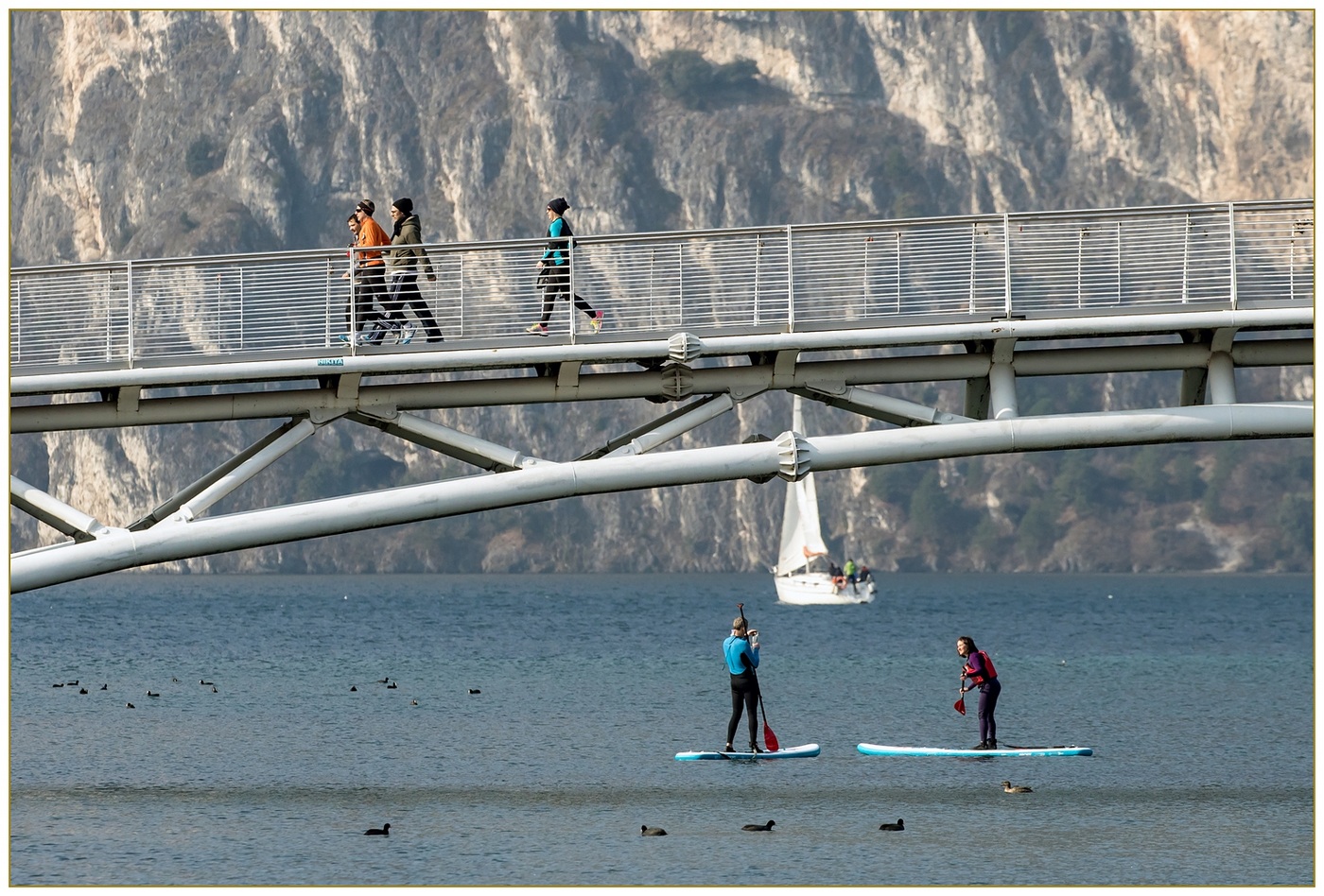 PS: per la verità questo ponte funge pure da ciclabile, ed molto frequentato, però in quel momento o passavano pedoni oppure bici... ad un certo punto mi vedevo sfuggire la barca a vela ed ho dovuto accontentarmi così.