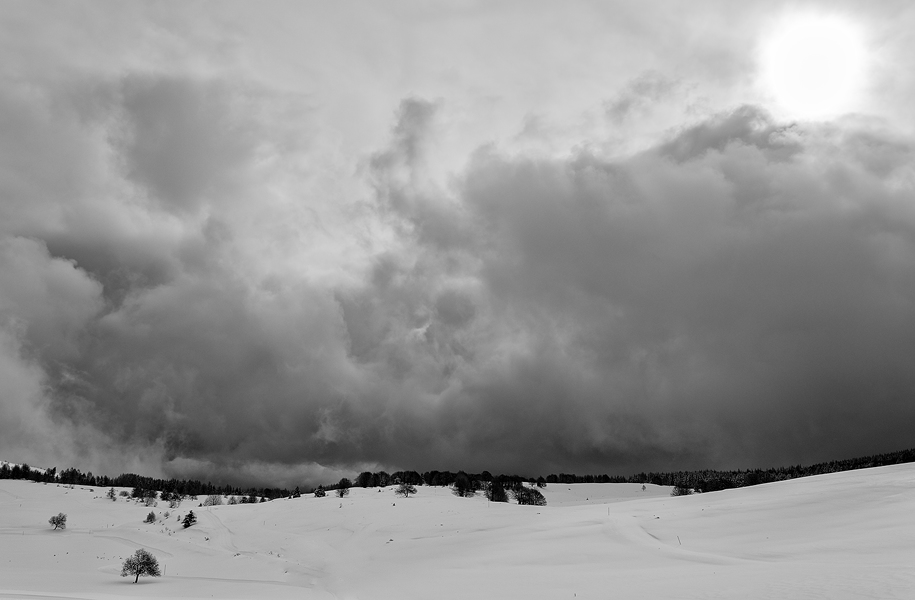 L'impressione è che il fronte nuvoloso stia per abbattersi e travolgere il manto nevoso.