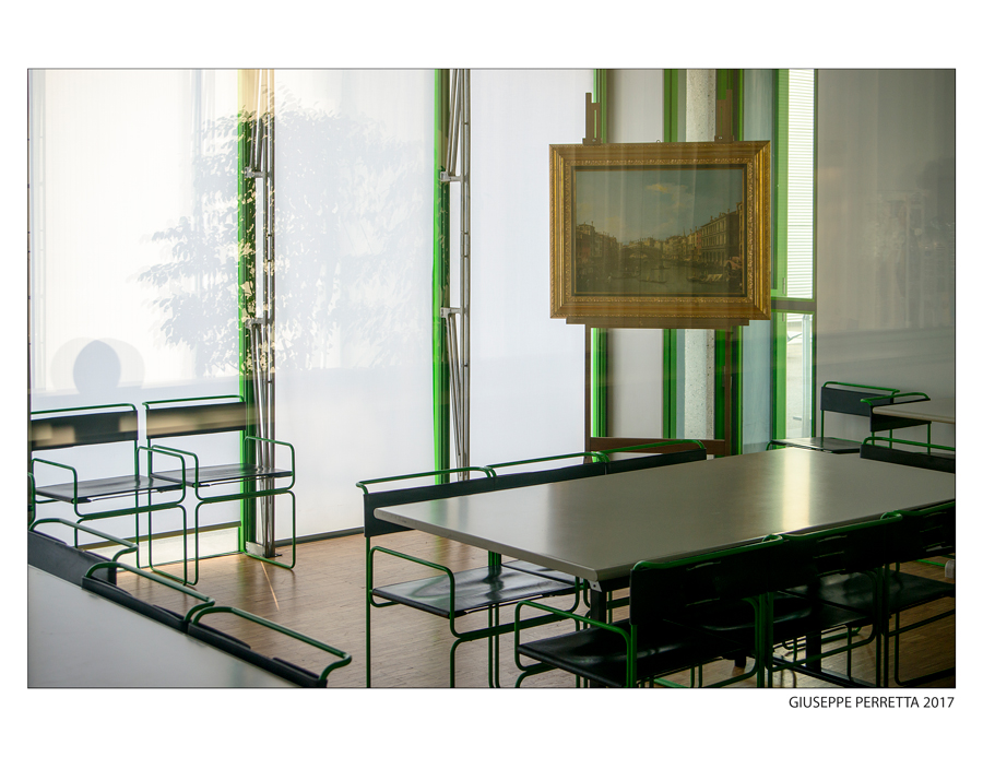 Tutti gli arredi sono disposti paralleli alle pareti della stanza, anche i riflessi del vetro... tutto tranne i lati sopra e sotto del Canaletto, che infrange le regole.