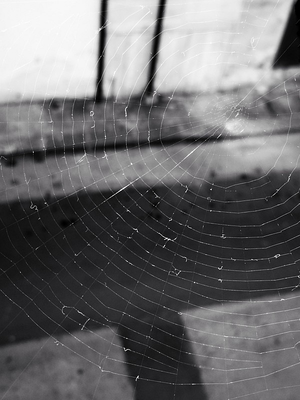 Sottilissima trama del lavoro certosino del ragno, ma in realtà perfettamente visibile nella quasi totalità della inquadratura. Lo sfondo fuori fuoco ha la giusta tonalità per non umiliare la presenza della fragile tessitura. A mi parere una giusta scelta della sezione varie e non macro, in quanto credo tu abbia voluto ritrarre questo particolare, ma senza perdere di vista la atmosfera di tutto l'insieme: il locale polveroso, il legno , le ombre spesse, il contesto che accoglie questa realtà grafica creata da un piccolo essere.
