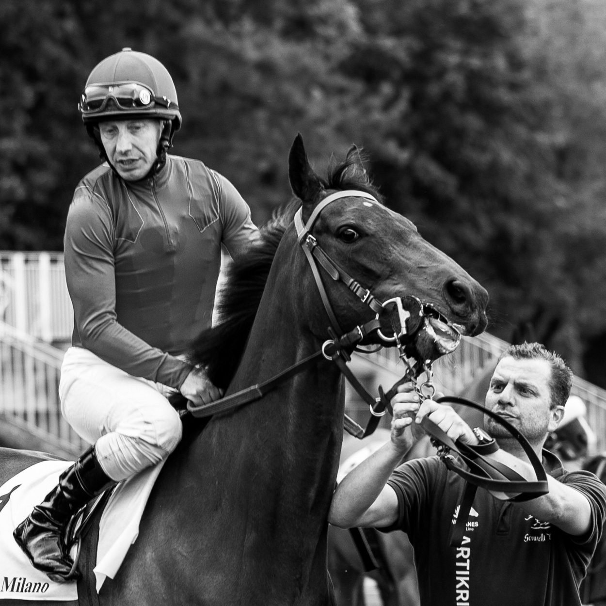 Sei riuscito a restituire la tensione del momento immortalato e hai dato un grande dinamismo al formato 1:1, in cui il piede del fantino determina l'appoggio su cui si costruisce tutta la scena.