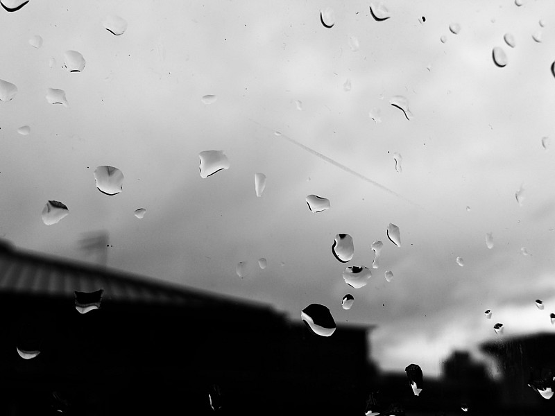 La nitidezza delle gocce e il mondo che dietro il vetro si intuisce soltanto.