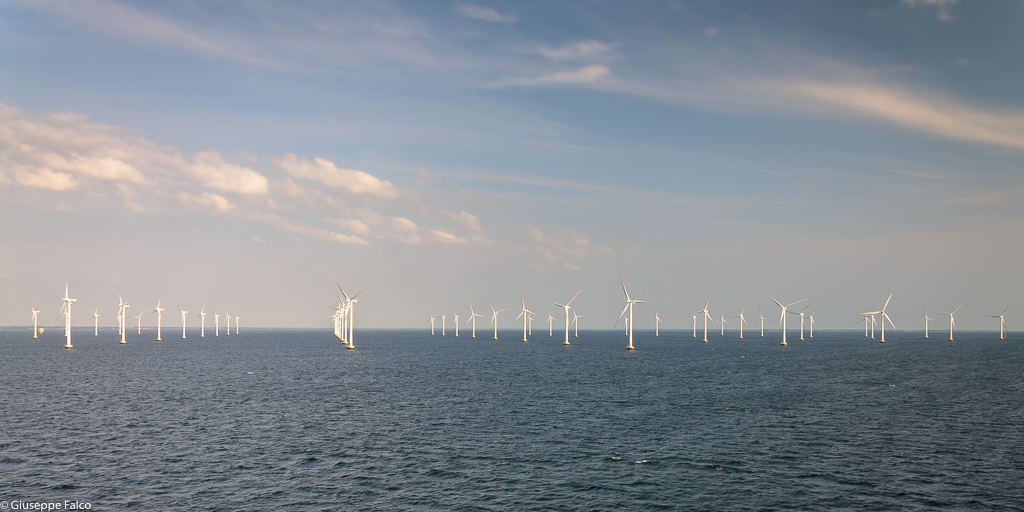 Un bellezza questa panoramica marina, sull'esercito delle pale eoliche giganti, nel mare nordico. Ho avuto anch'io la fortuna di fotografarle dal vivo, e ne ho un ricordo vivido che la tua foto ben sa rinnovare. Ben accompaganta la compo dalla diagonale soffice dell nubi e da contrasti e colori ben gestiti con naturalezza.