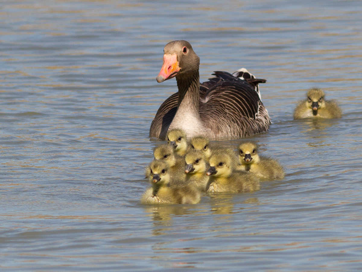 Ma che sguardo truce ha l'ultimo piccolo dietro? Tutti i fratellini in formazione e lui in castigo là dietro. La mamma impassibile avanza...