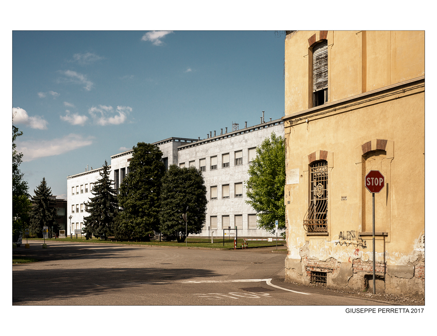 Un bellissimo doppio stop, ribadito a terra dalla vernice bianca, e più autorevolmente sentenziato in alto dal rosso del cartello. Ma lo sguardo di chi osserva, fortunatamente, non deve seguire il codice stradale, e può spaziare nella ariosità e cura del tuo paesaggio urbano.
