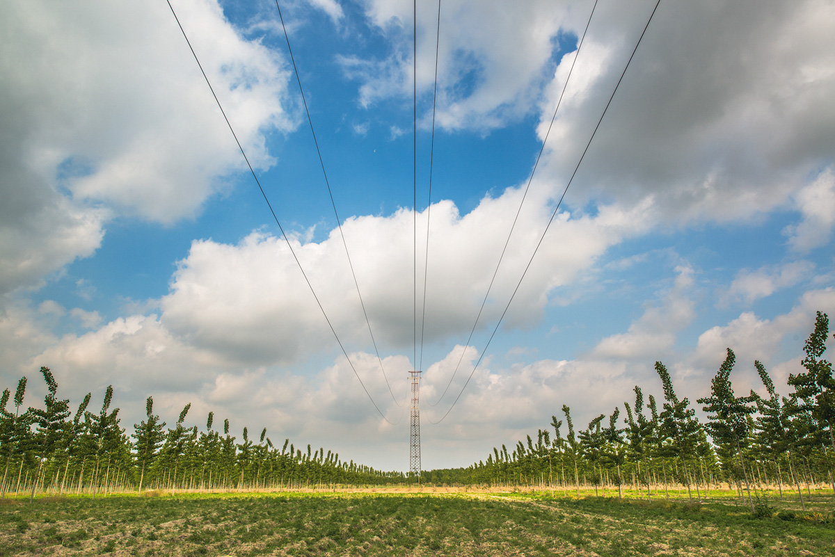 I pennacchi delle chiome leggere, sembrano ondeggiare, vibrando, come attirati da un vento magnetico, influenzati dalla corsa alta dei cavi.