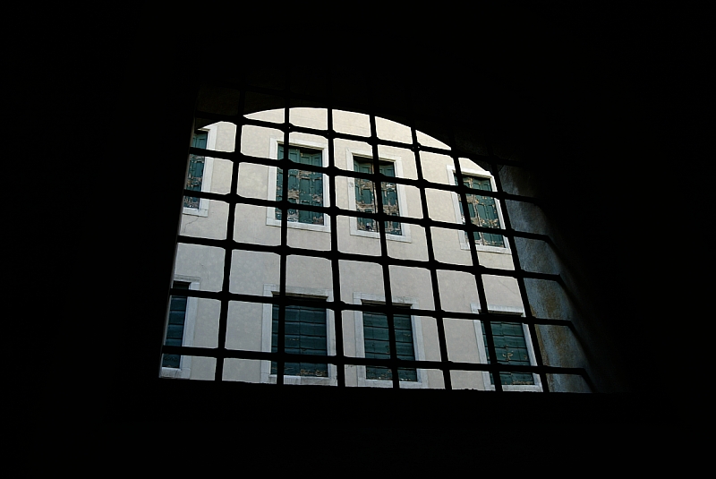 La domanda che ti sei posto è quanto con questa immagine volevo ottenere. L'inquadratura non ritrae una prigione ma un comune porticato. L'ampio spazio concesso al vuoto nero profondo e l'architettura visibile di la delle sbarre non sono casuali. Quel che c'è o non c'è di qua e di la delle sbarre è disorientante, non si capisce da che parte c'è la libertà. O non c'è? O c'è? E allora dov'è?