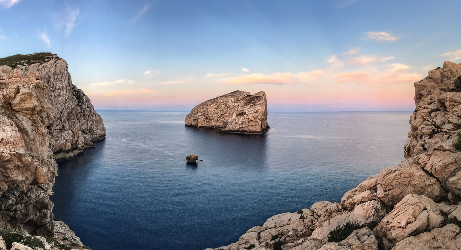Osservandola dallo schermo del mio iPad mini, io vedo una scena ben restituita. Confesso che se non sapessi il mezzo usato, la troverei comunque con ben pochi problemi. Mi piace questo confronto di masse giganti di roccia, come mitologiche presenze in un mare quieto, ed un solo miniisolotto... . eheh, fra i flutti.