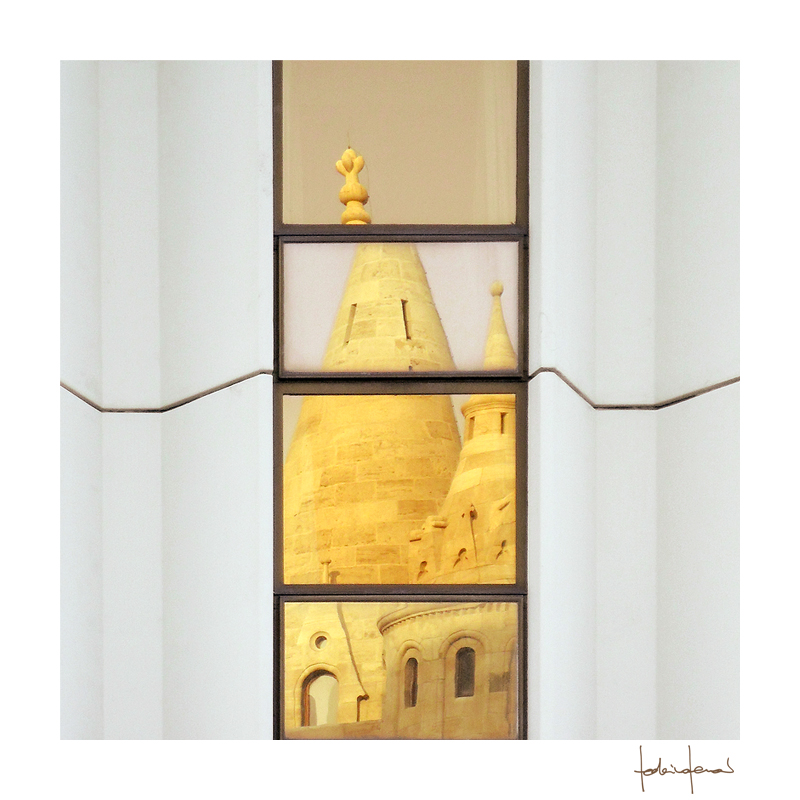 La scomposizione è data dal riflesso alla luce del tramonto delle strutture semigotiche del bastione sulle finestre dell'hotel Hilton proprio di fronte. Rivedendo questo scatto giorni fa, un campanellino è risuonato nella mia testa e ho deciso di proporvelo a critica perchè mi è sembrato, anche per il taglio adottato, abbastanza interessante.