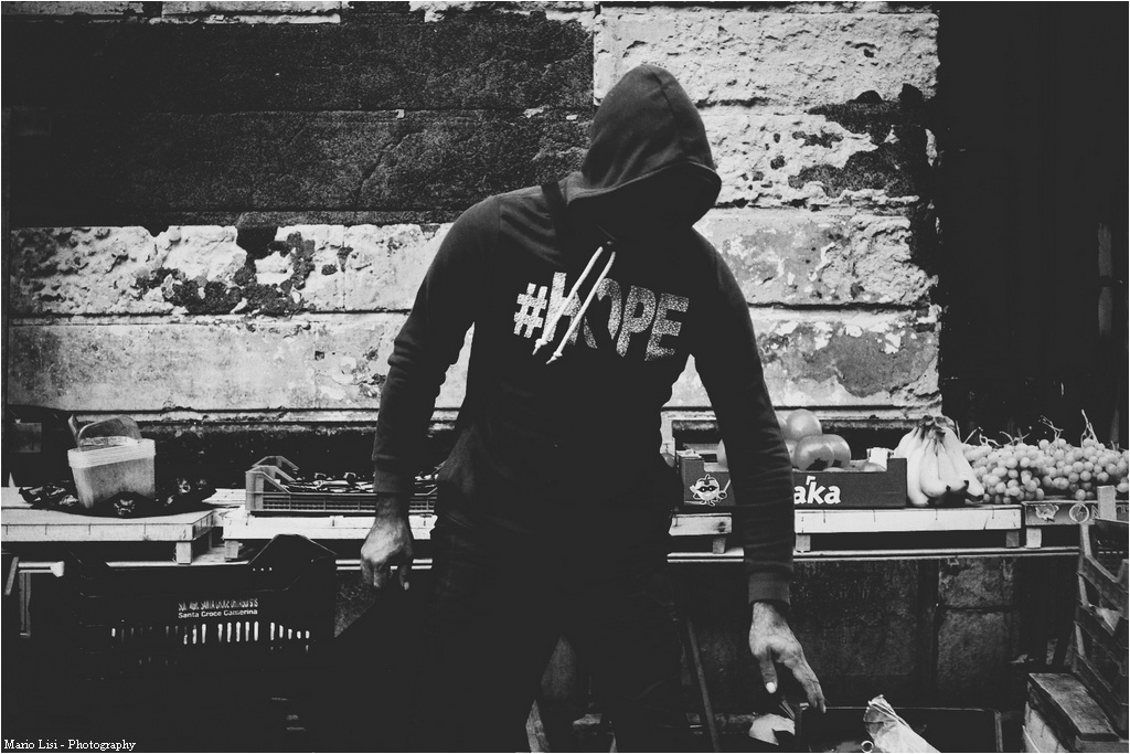 Battuta a parte, foto pensata in b/n ed efficace nella sua capacità di celare il volto del ragazzo.