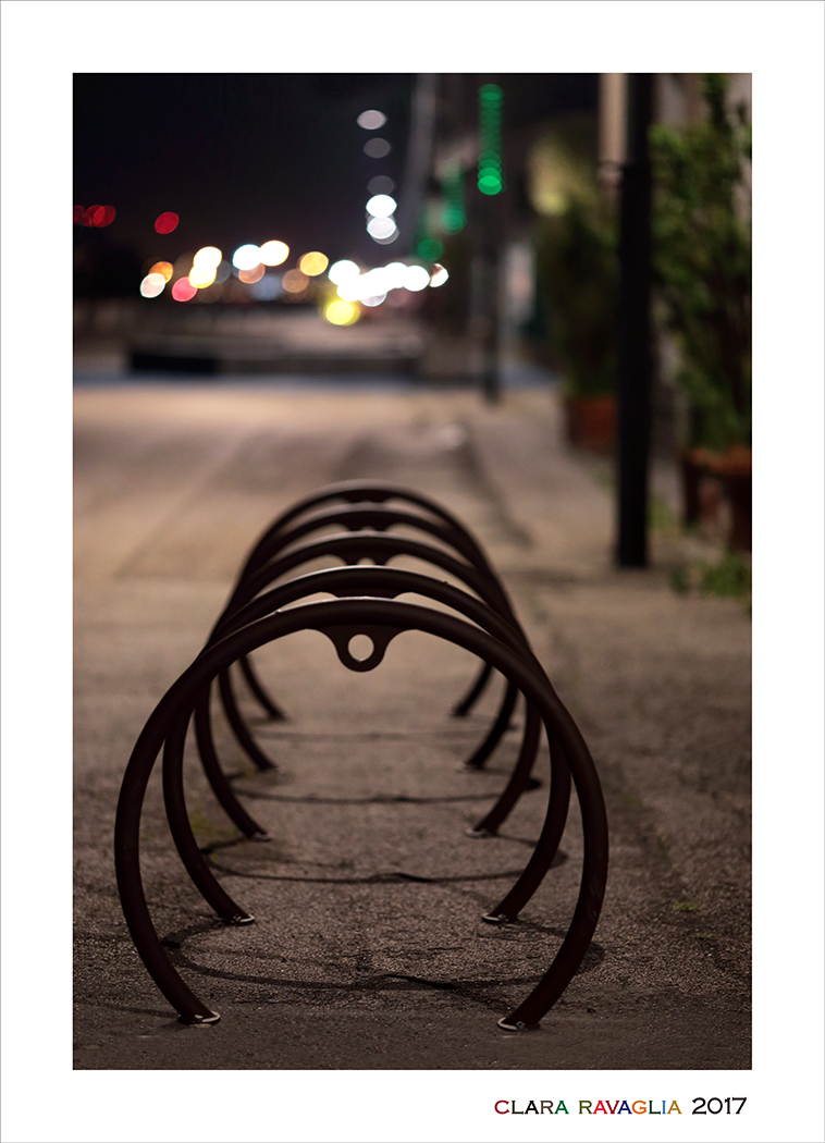 Spiragli di vento in una notte colorata e scaldata dai colori dei fari delle macchine, lampioni e samofori in questo bokeh delizioso . Il sapore del marciapiede, dove di giorno in questo specifico posto si assite al rumore del traffico, e delle piccole battute scintillanti rumor ferro dei cerchioni delle biciclette adagiate nel loro piccolo e riservato parcheggio, in attesa di poter essere "portate in giro" da due piedi e gambe forti per la città ma ora, tutto è spento,, le biciclette riposte in negozio per far largo a questo alito di vento ,alla dolce musica silente dal sapor di notte e dalle note gentili di questa fresca passeggiata.