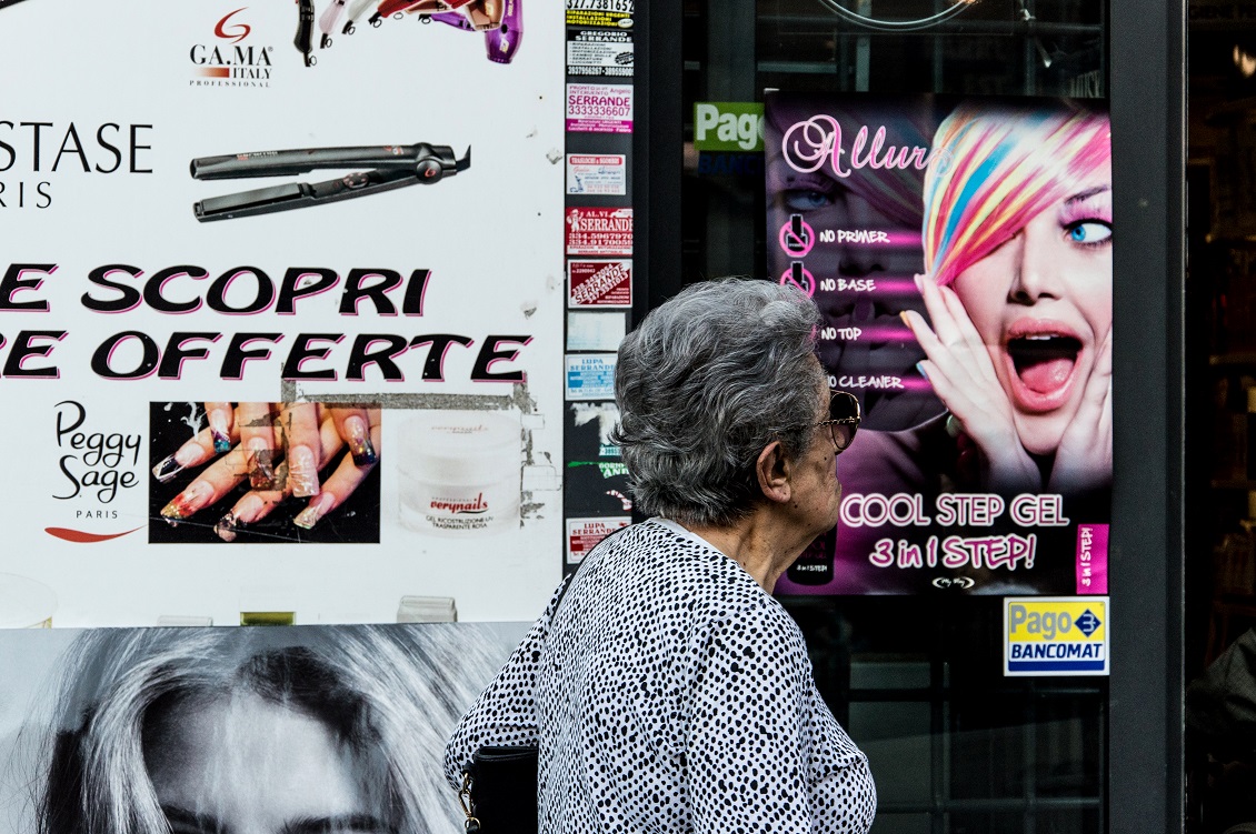 Simpatico l'accostamento tra l'anziana signora e la ragazza del manifesto reciprocamente impressionate.Ottimo scatto! Ciao