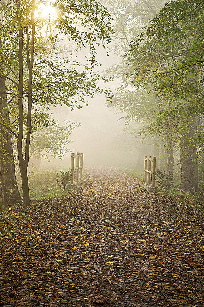 Direi che la esasperazione dei contorni con la MDC è una scelta consapevole : quasi a sfiorare un effetto pittorico di puntinismo. E allora si avverte quasi lo scricchiolare della foglie secche nel sentiero, mentre ai lati un fruscio di foglie si rende udibile. Luce pallida ma intensa, che non riesce a vincere la barriera diffusa della foschia, ma si fa lucente in un solo o punto superiore, dove i raggi scalfiscono appena il manto pastello.