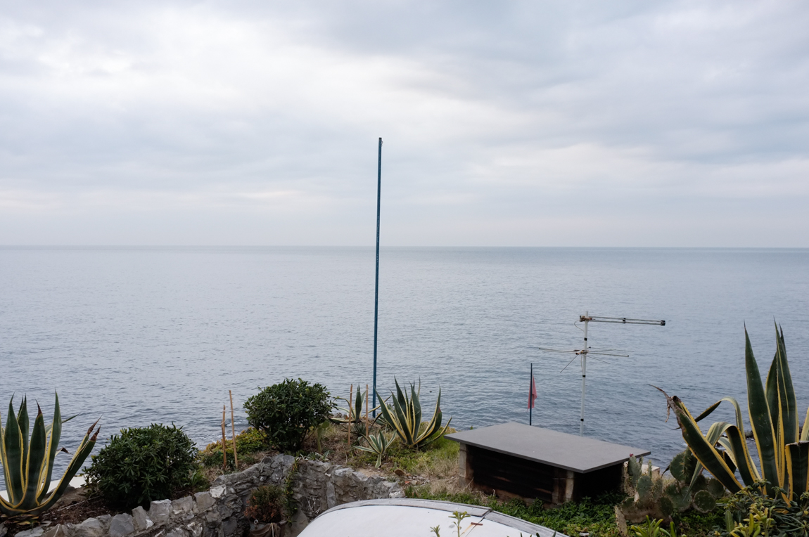 Ambiente tipico delle nostre coste con tanto di aste,antenne,bandierine,manufatti vari e piante grasse ma sullo sfondo il deserto mare,rifugio degli occhi e della mente.Bella! Ciao