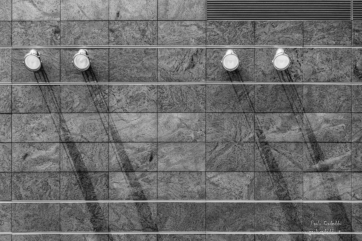 Un sottile gioco di ombre, che richiama , senza chiassi, le rette della griglia superiore di areazione.