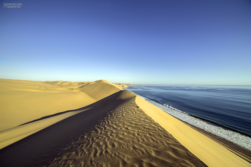 Affascinante questa porzione di duna scura e segnata dal vento, in contrasto con quella più in lontananza liscia e in piena luce.