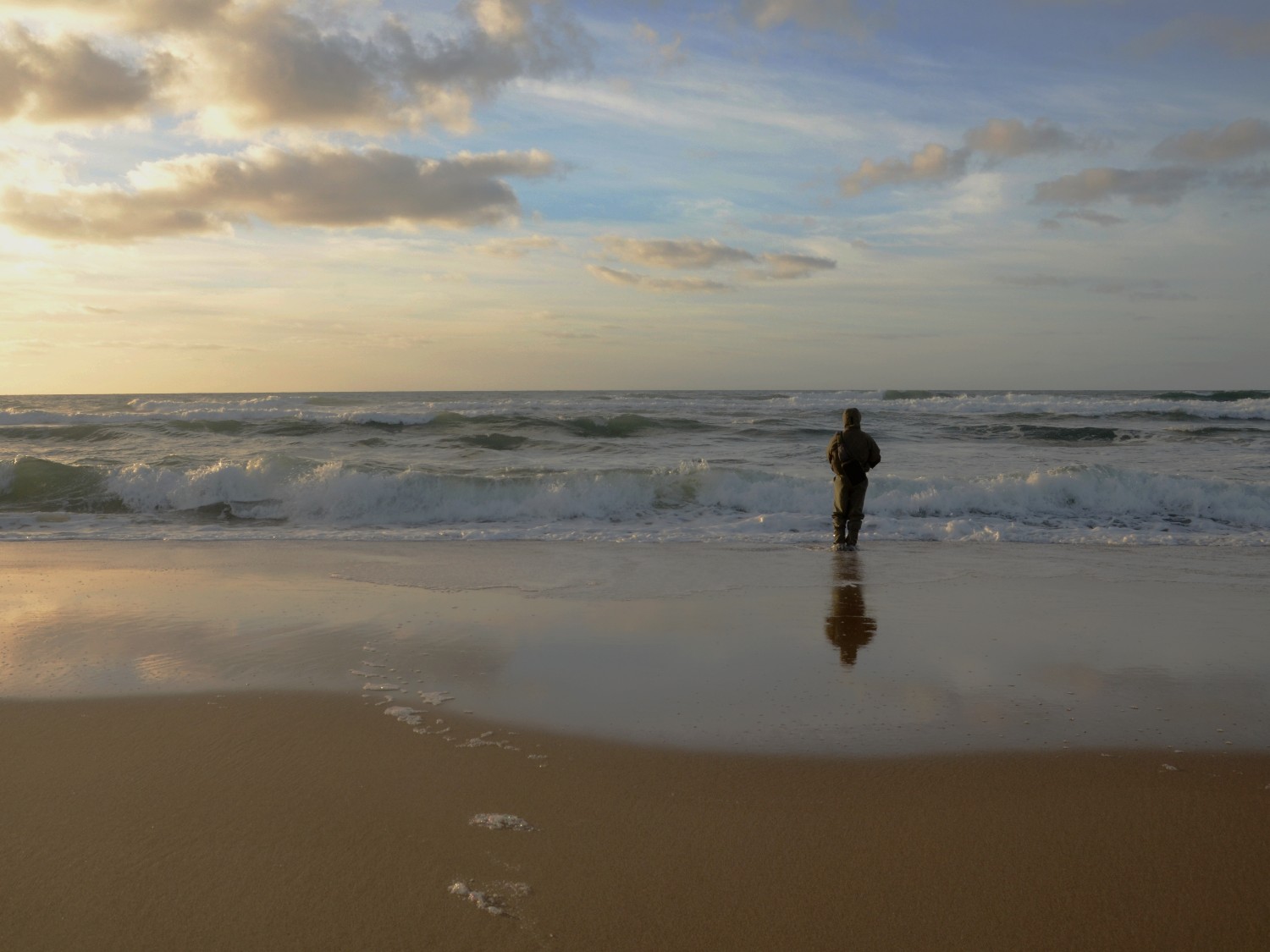 C'è molta poesia in questa luce, in quella lunghissima battigia e nella figura contmplativa davanti il mare.