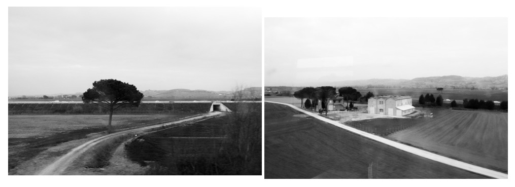 la sfasatura allineante è efficace nel creare interesse; e la non corrispondenza effettiva dei due quadri, peraltro resi omogenei dal meteo grigio, non fa che premiare l'idea iniziale