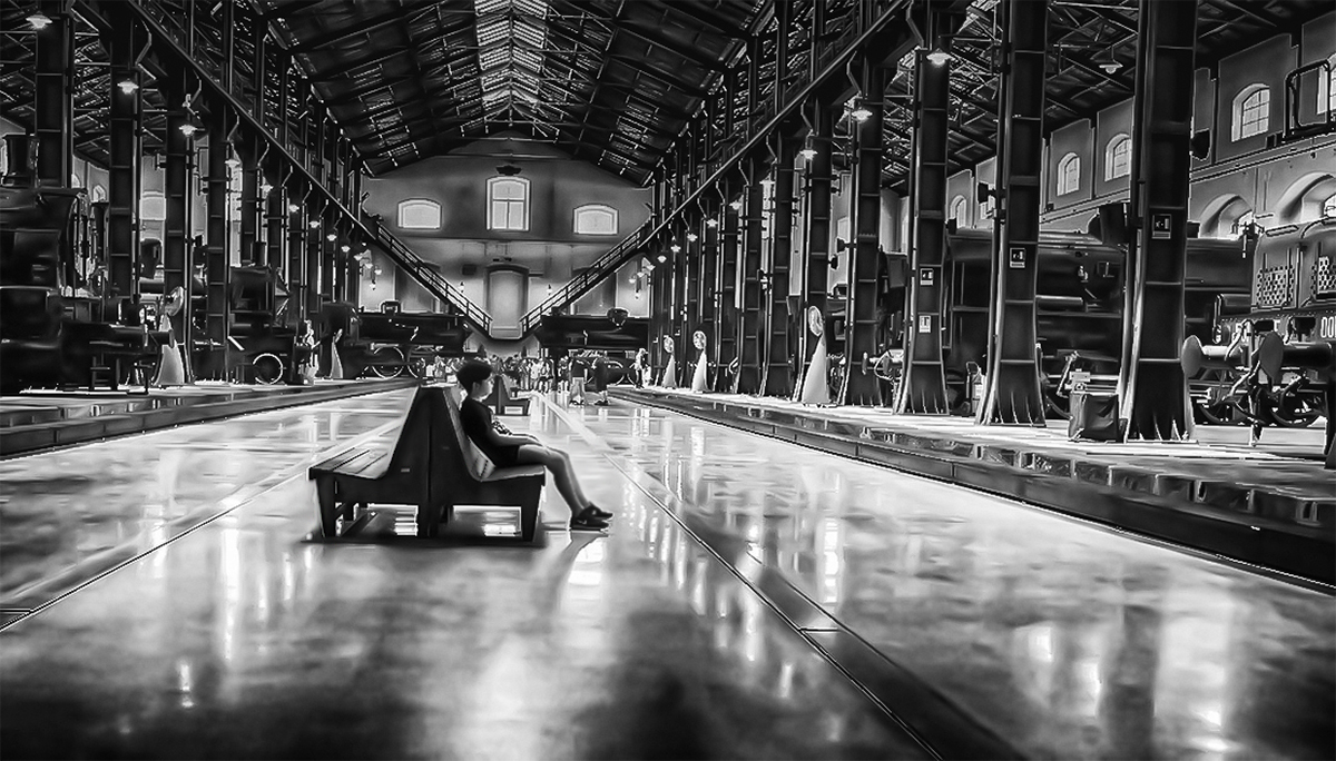 Mi piace molto il bimbo seduto affascinato e stanco dalla saturazione di treni di questo particolare museo.